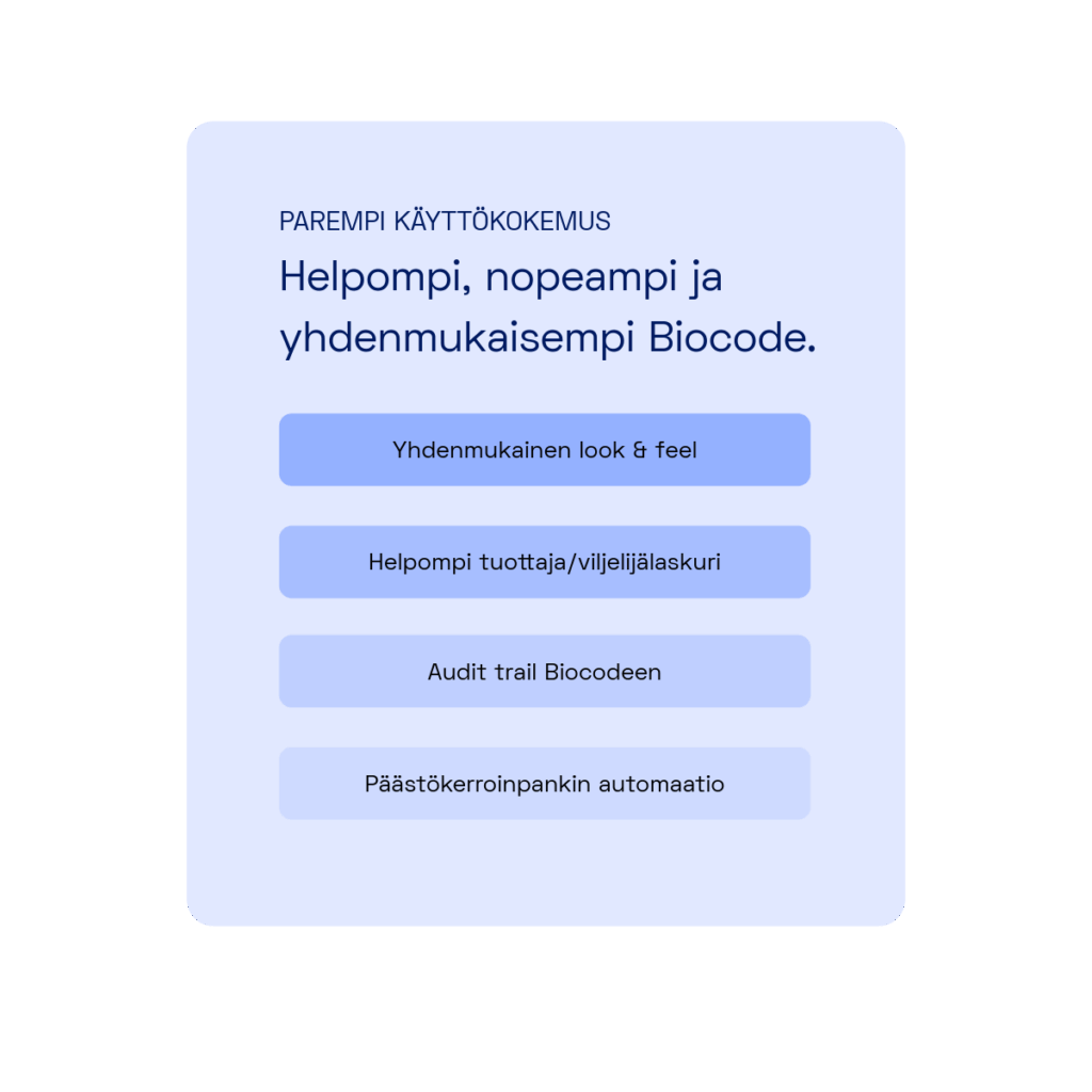 1. Parempi käyttökokemus: hiilijalanjälkilaskenta pitää olla helppoa Biocodessa